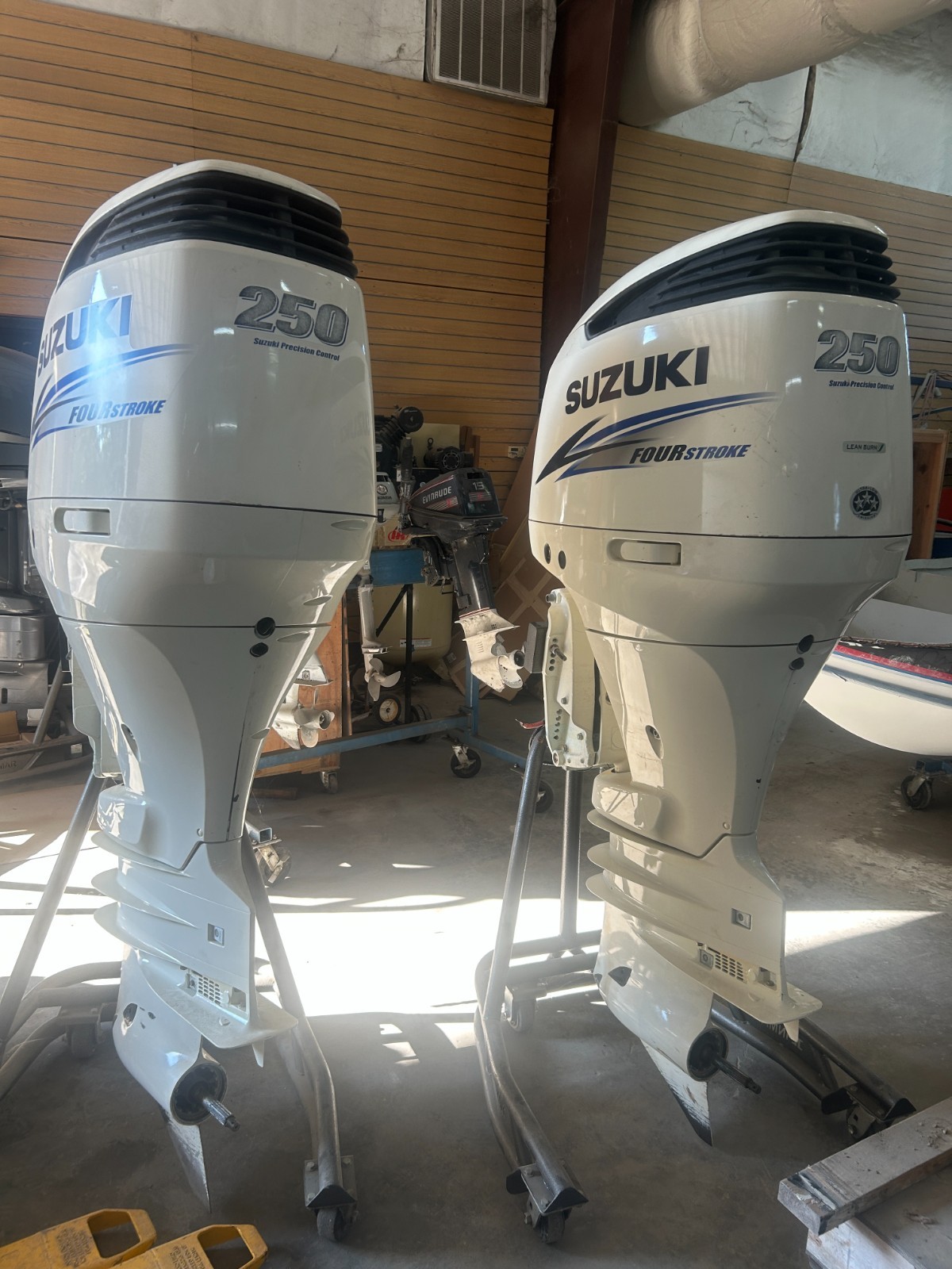 Used pair of 2016 Suzuki DF250APXW 250HP 4-stroke outboard motors with 30” shafts. 839 & 846 hours. Good compression and strong offshore repower option.