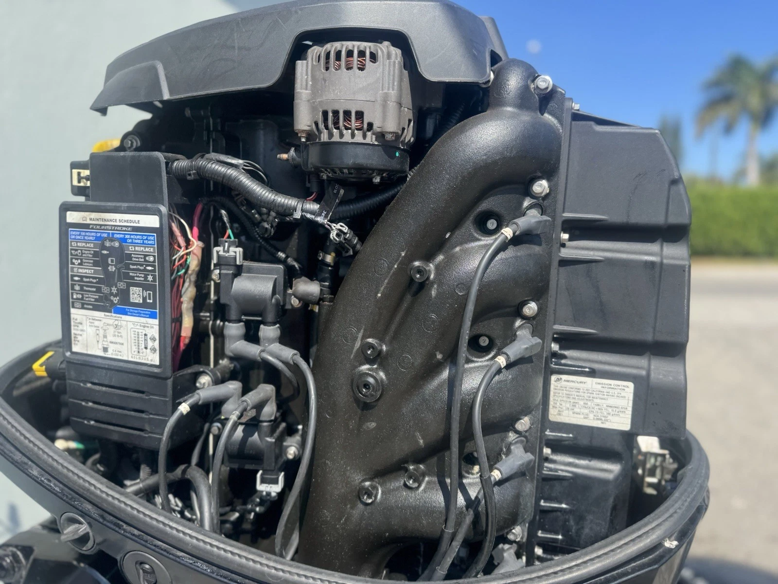 This motor has 538 original hours and has been professionally maintained. It runs strong and performs exactly as expected from a late-model Mercury four-stroke.
